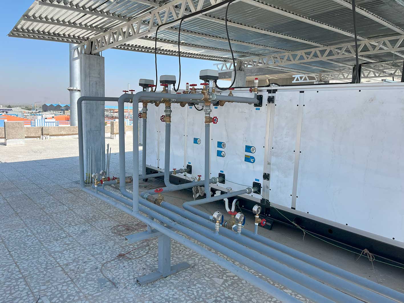 مشاوره ، تامین متریال و تجهیزات ، طراحی ، اجرا و راه اندازی موتور خانه مرکزی ، هواسازها ، چیلرها ، خطوط پایپینگ استیل ، بخار و هوای فشرده و ….
